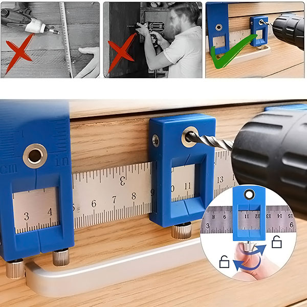 🛠️ Perfekcyjne wiercenie za każdym razem! Ułatw sobie majsterkowanie dzięki naszemu regulowanemu szablonowi centrującemu. Precyzyjnie wierć otwory w drewnianych meblach i nie tylko, z szybkim i dokładnym wyrównaniem dla każdego projektu.