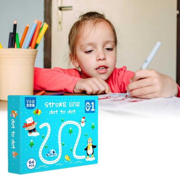 Ćwiczenia obejmują zadania takie jak logiczne łączenie obiektów, łączenie kropek, podążanie za ponumerowanymi liniami i inne.