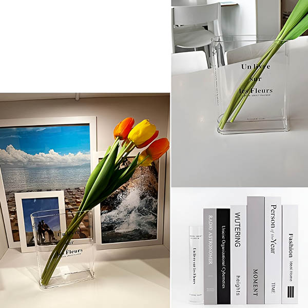 Wykonany z materiału ABS o grubości 3 mm, wazon naśladuje wygląd szkła, oferując jednocześnie zwiększoną trwałość i odporność na stłuczenia. Gwarantuje to, że wazon w kształcie książki pozostanie piękny i funkcjonalny przez wiele lat.