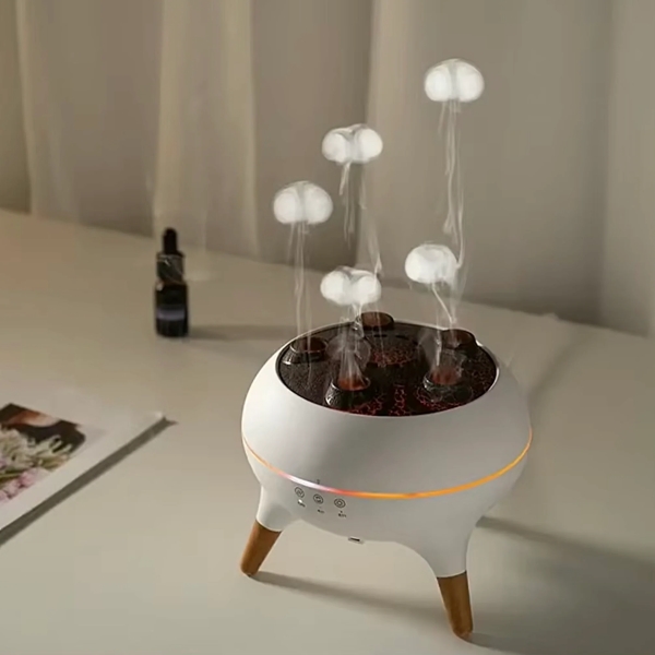 Tryb Meduzy naśladuje delikatny, rytmiczny ruch meduzy, oferując spokojną i relaksującą mgiełkę idealną do odprężenia lub snu.