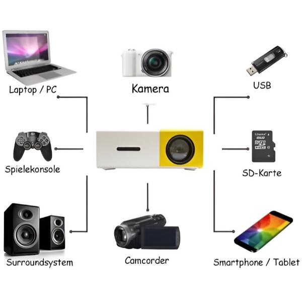 Dzięki wielu portom, takim jak USB, HDMI i AV, ten projektor zapewnia dobrą zabawę, niezależnie od używanego urządzenia.