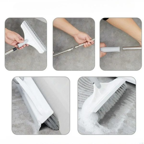 Konstrukcja w kształcie litery V czyści fugi, listwy przypodłogowe i ciasne rogi, po których standardowe miotły tylko się ślizgają. Płaska strona radzi sobie z powierzchniami w łazience, oknami i otwartymi podłogami – wszystko za pomocą jednego narzędzia.
