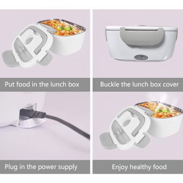 Elektryczny pojemnik na lunch działa cicho, nie uwalniając pary wodnej ani nieprzyjemnych zapachów.
