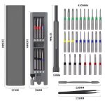Zawiera 28 precyzyjnych bitów, 1 śrubokręt, pęsetę i łom.